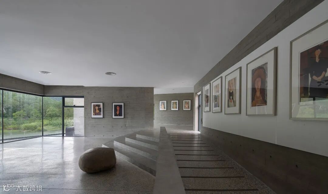 项目位于四川省崇州市锦江新华村唐家碾,场地原有的树木保留下来和建筑围合而成大小不一的四个院子,设计之后的五个独立空间由一条坡道主轴和外部环廊串联在一起,靠内紧贴坡道和挑廊的外墙均为实墙,靠外能看见树林、稻田的外墙均为全落地玻璃,形成内实外虚、抑扬顿挫、移步换景、私密独立的组合空间。