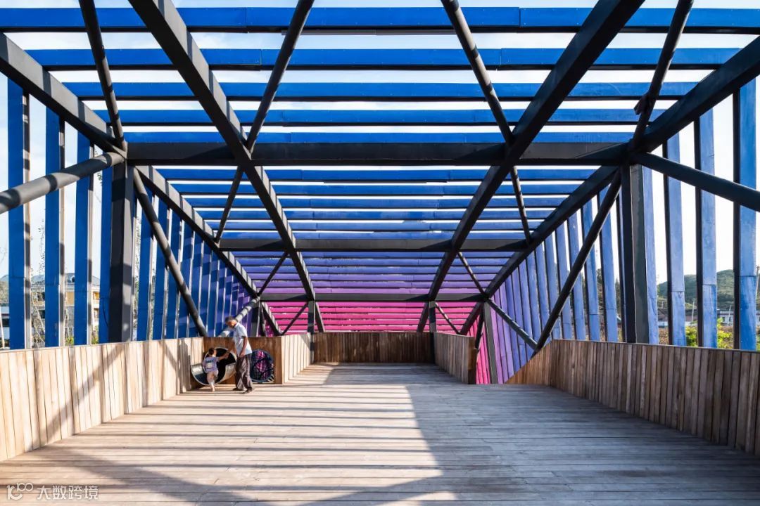 「一座农桥」成为离开田岗知行村的出口,它将原始场地中危险的涵洞桥转型成为可运营、可互动、可游玩的「价值之桥」,亦以天外来客般的五光十色与乡村的质朴形成对比,遥想着「城市的光怪陆离」。