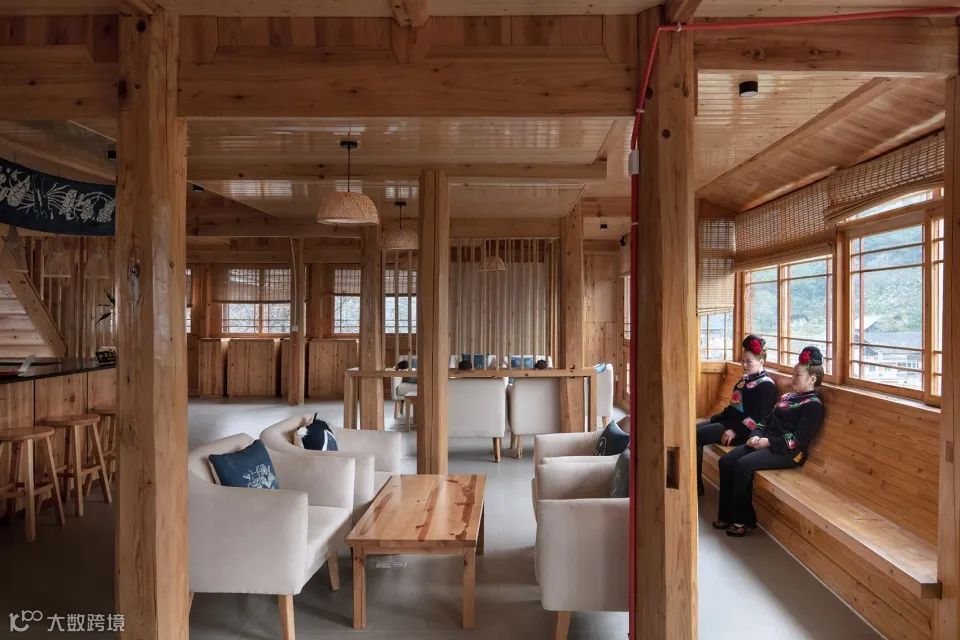新寨坪村的规划在尊重原有村庄肌理基础上进行,以修复为主,包含多个层级。一是将部分民居改造为民宿,统一对外运营;二是将村民小广场附近较为集中的民居,改造为接待、餐厅、市集、文创等;三是对公共区域、路径及其景观进行提升,改造停车场、景观亭、牛栏咖啡、挡土墙及步道等。当地政府同步开展村庄的生态修复工作,包括农业种植、田野景观、房屋周边环境整治等。