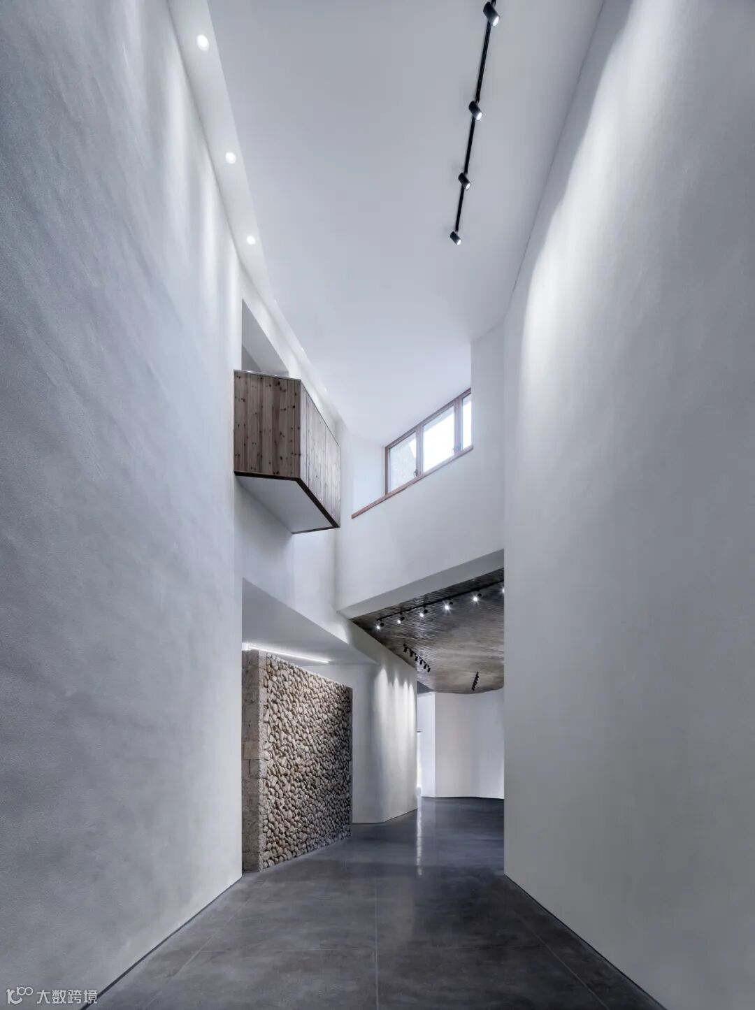 簇群形态在一楼及二楼的南侧相应的转变为3个通高的展览空间,工作室及茶室,西侧为通高的入口大厅,北侧为厨房及体验室。