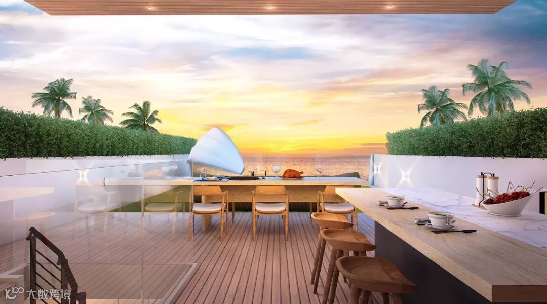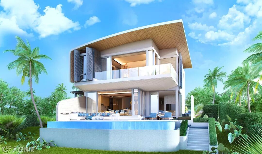 流线型的建筑外立面,加强了建筑与环境之间的有机联系,浪漫的弧度就像延时摄影后的星空,寓意宇宙的无边无际,住在这里,可以让思绪去遥远的星际漫游。独立泳池、落地窗、观景平台等元素,将阳光、空气纳入建筑内部空间,带来明朗的视觉效果。
