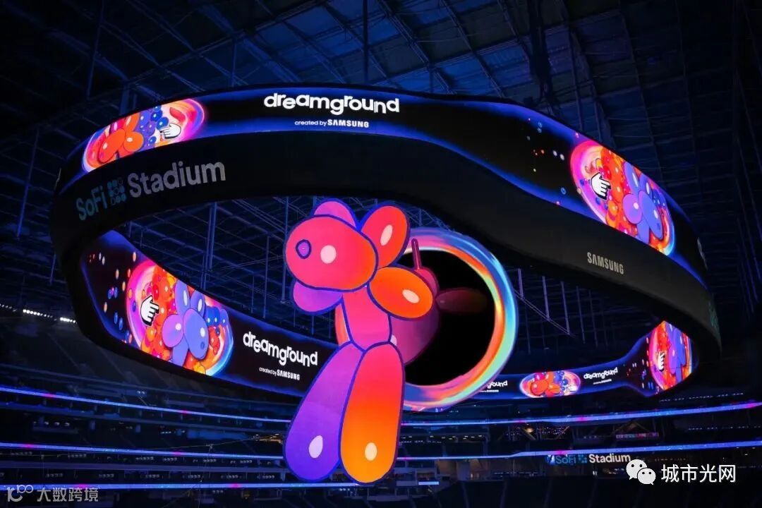 三星打造的 Dreamground 是 5G 赋能实体的AR游乐场音乐应用,它将好莱坞公园、SoFi体育场以及纽约的三星837体验店的现实建筑与AR技术相结合,让游客沉浸在梦幻、有趣的数字环境中。