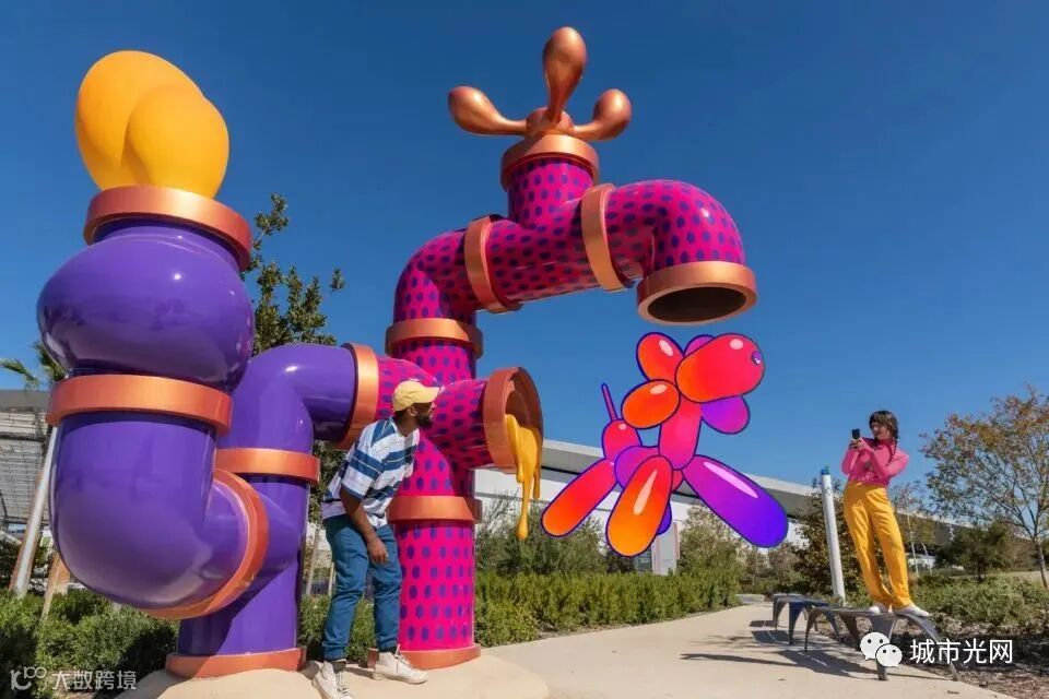 在Bubbloonland,波普艺术管道在半空中盘旋,吸引着游客从超现实的角度拍摄照片,激起了人们的好奇心。