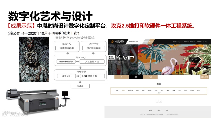 第三个比较重要的事情是数字化的未来。温州一家做鞋的企业,我们基于数字艺术个性化定制,让它们做图案定制,效果很好。后来我们基于此开发了一些系统,比如我觉得这张油画很好我就通过扫描,扫描一定量后,就开发出了一个可以自动创作的软件工具。