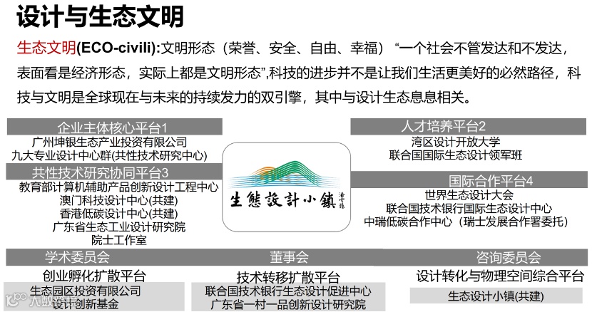 这几年我们在广州做了一个生态设计小镇,是以企业为主体的一个平台,包括共性技术研究、人才培养、国际合作平台,并且举办了世界生态设计大会(WEDC),吸引一批顶级的科学家、企业家、艺术家来。政府统计,我们通过设计提升乡村创业环境、村民就近就业以及村企合作实施村民收入倍增计划,能够提供100多就业岗位,使得当地村民人均年收入2016年增幅达200%。