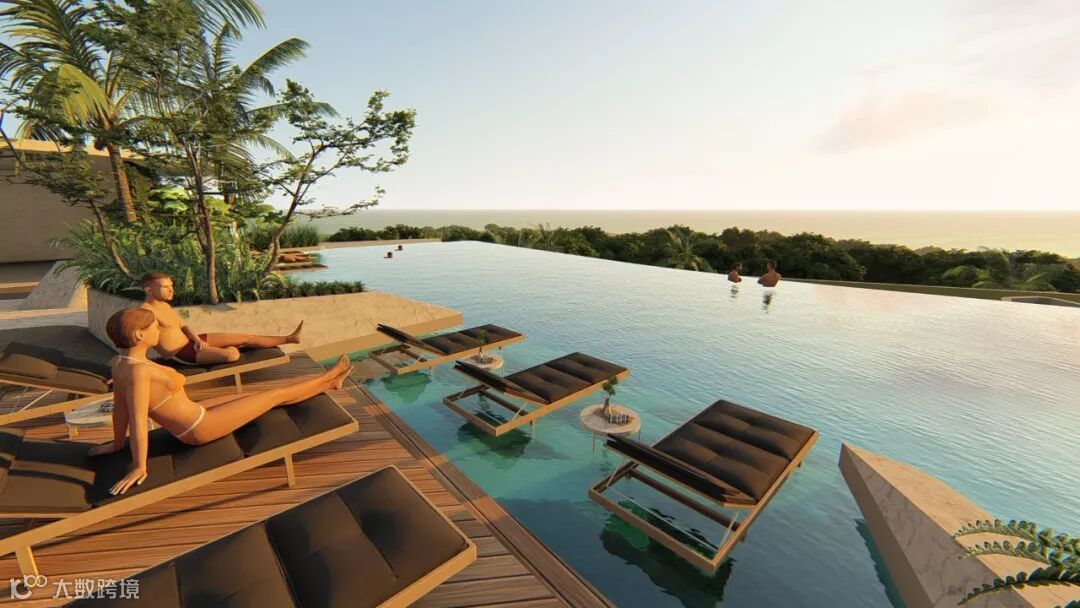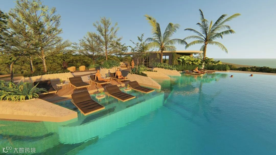 空中无边际海景泳池规划面积达230㎡,拥有极佳视野,可满足至少100人同时畅玩。不管是畅游在泳池内,还是在躺在太阳椅上呼吸海岛满满的负离子,欣赏满眼蓝色水域的无敌海景,都能体会到动人的度假体验。