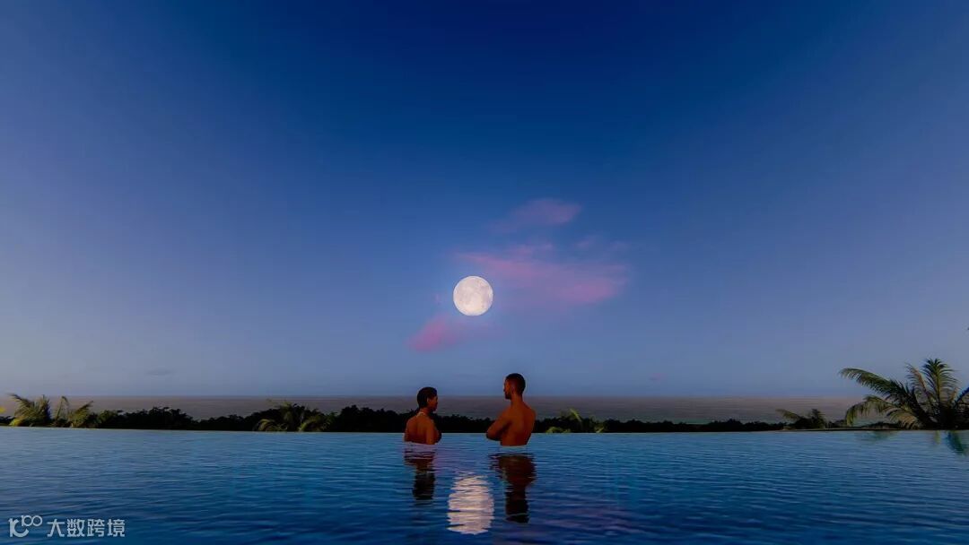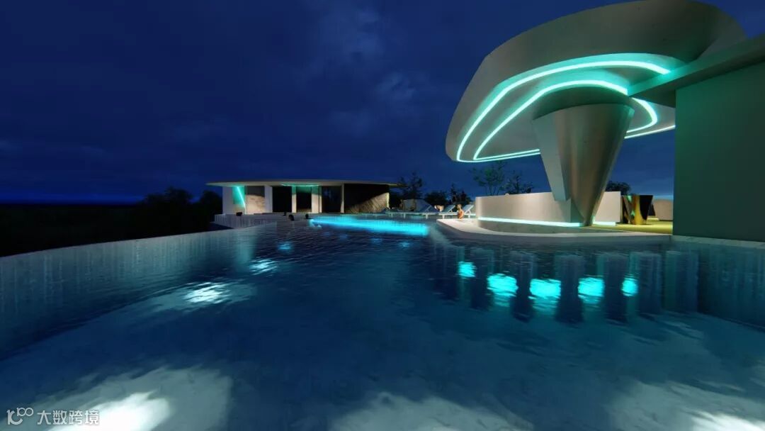 夜空下的空中泳池,还有热情浪漫的一面。
