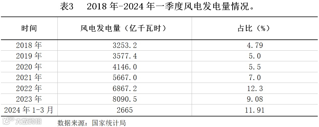 2024年1-3月份,全国规模以上电厂发电量22372亿千瓦时,同比增长6.7%。其中,风电2665亿千瓦时,同比增长16.53%。