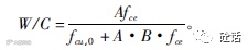 其中,A,B均为回归系数。回归系数A和B应根据工程所使用的水泥、骨料和通过试验建立水灰比与混凝土强度关系式确定,当不具备上述试验资料时,对碎石混凝土A可取0.48,B可取0.52,对卵石混凝土A可取0.50,B可取0.61;fce为水泥的实际强度,MPa;fcu,0为混凝土施工的配制强度,MPa。