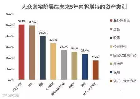 有超过一半的大众富裕阶层希望在未来5年内增加海外投资的比例,这一比例超过国内所有投资品种。而这其中,有相当比例未进行海外投资的大众富裕阶层期望在未来5年内首次进行海外资产配置,可以预见的是,海外投资需求将在未来5年内得到进一步释放。