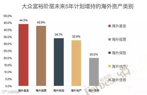 此外,福布斯在此次的调研中发现,中国境内已有28.3%的大众富裕阶层持有海外资产,预测2017年大众富裕阶层人群总数将会在2,000万左右,这个数据意味着有超过500万大众富裕阶层已经配置了境外资产。