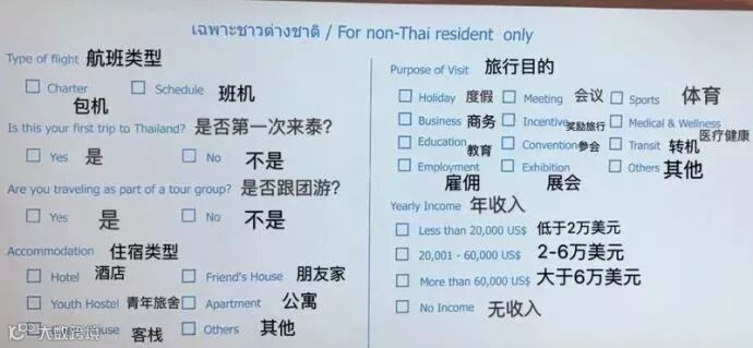泰国新版出入境卡