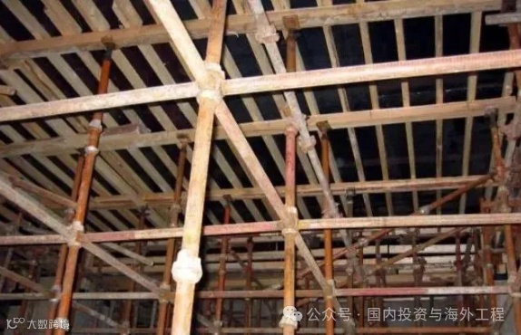 4、 支设立杆时,为防止把下层楼面混凝土压伤,立杆底部必须垫方木垫块;