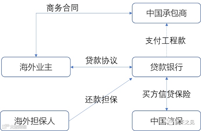 在此融资方式下,中国的贷款银行一般会选择向中国出口信用保险公司投保,自己作为被保险人。