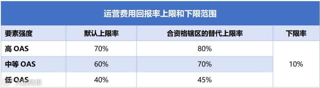 中国是运营费用交叉检查中的合资格管辖区,甲公司OAS为26.18%,属于中等OAS,所以根据下表,甲公司2023年等效运营费用回报率已超过运营费用回报率上限(替代上限率)和下限范围,故甲公司触发运营费用交叉检查。