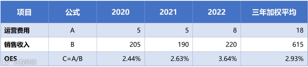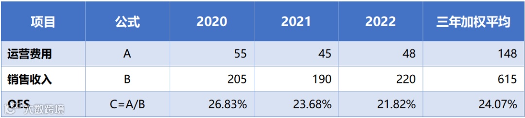 5)过去三年(2020-2022)加权平均运营费用密度(OES)计算
