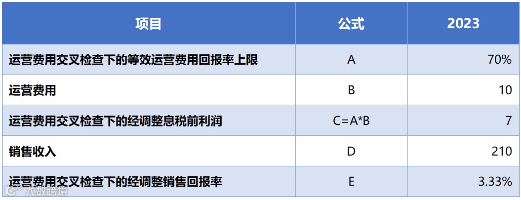 示例3:金额B销售回报率在触发运营费用交叉检查下的计算