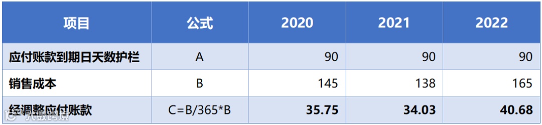 以下为甲公司针对超过应付账款到期日天数护栏情况下,对于应付账款的测算调整: