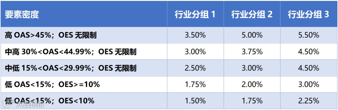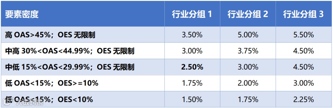 中国是运营费用交叉检查中的合资格管辖区,甲公司OAS为26.18%,属于中等OAS,所以根据下表,甲公司2023年等效运营费用回报率在运营费用回报率上限(替代上限率)和下限范围之内,故甲公司没有触发运营费用交叉检查。