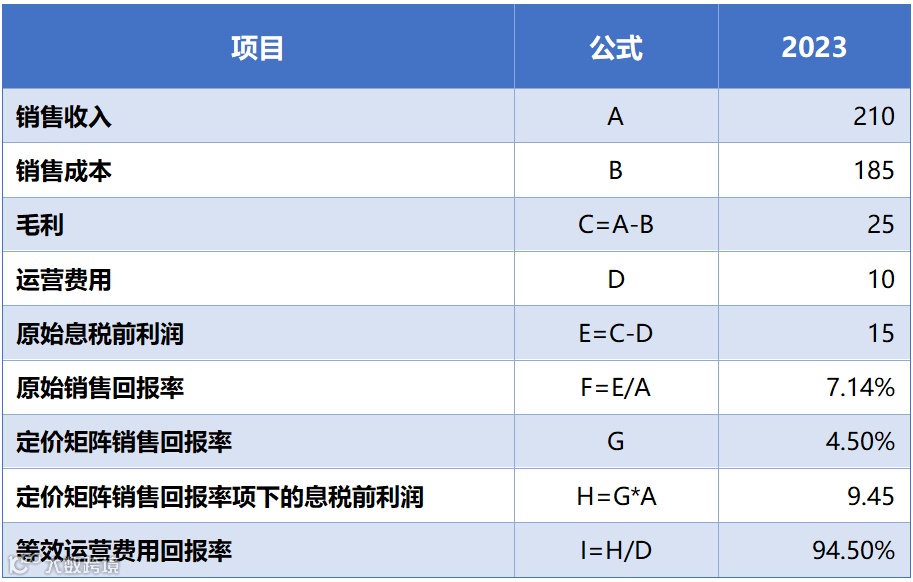由上可得,甲公司的OAS为26.18%,OES为24.07%,行业分组属于第一组,故根据定价矩阵,甲公司在2023年销售回报率应为2.50%(+/- 0.50%),即区间为2.00%-2.50%-3.00%。