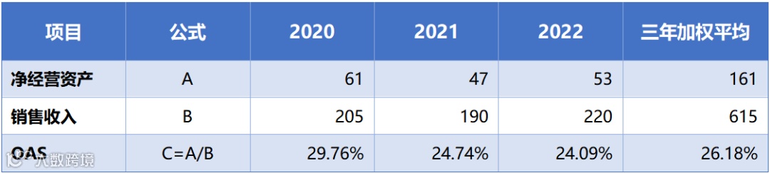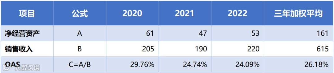 4)过去三年(2020-2022)加权平均净经营资产密度(OAS)计算