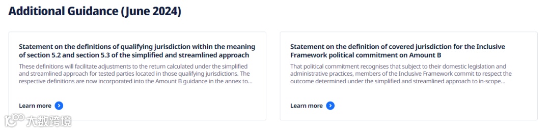 2024年6月17日,OECD发布了支柱一金额B补充指南¹,主要规定包括对上述运营费用交叉检查以及数据可用性机制中的合资格管辖区的定义,以及政治承诺范围内所涵盖的管辖区的定义。
