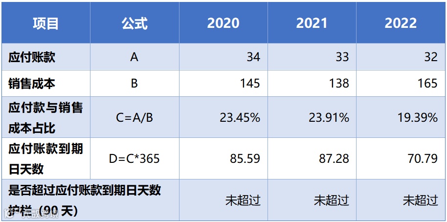 甲公司是否超过应付账款到期日天数护栏测算如下:
