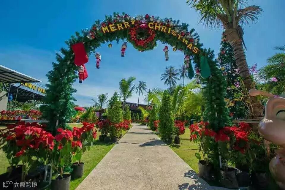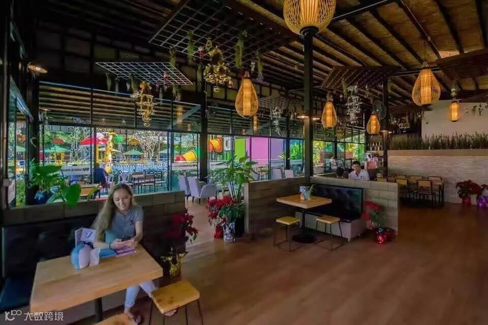 花园有儿童游乐场、水景、咖啡厅、热带花园环绕的步行小径。