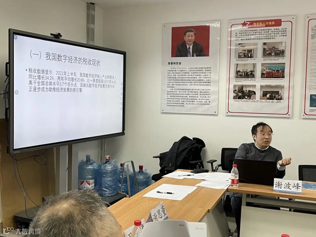 在主题发言环节,首先由中国人民大学数字税收研究所副所长谢波峰副教授就《数字化转型下的税制优化和征收管理现代化研究》进行了分析和讲解。他梳理了数字经济的发展概况,以北京市数字经济及税收现状为例剖析了数字经济的现状及其对税收制度建设和税收征管带来的诸多挑战,并运用具体案例从微观角度进一步解读了数字税收需要解决的核心问题。最后,提出了适应数字经济发展的税制优化和征管改革所要遵循的基本原则以及可以采取的政策建议。