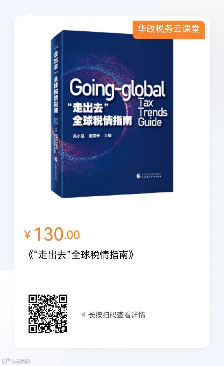 日前,中国财经出版传媒集团发布了2022年度第三辑好书推荐书目。由华政研究院院长吴小强、华政税务师事务所董事长董国云主编、中国人民大学数字税收研究所参与编写的《“走出去”全球税情指南》一书入选2022中财传媒好书推荐榜。本书首印即受到广大“走出去”企业和国际税收工作者的欢迎,第一批次已售罄,现已加印。