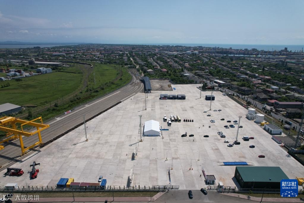 这是6月9日拍摄的格鲁吉亚波季港多式联运集装箱堆场(无人机照片)。新华社发(中铁二十三局供图)