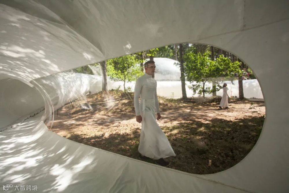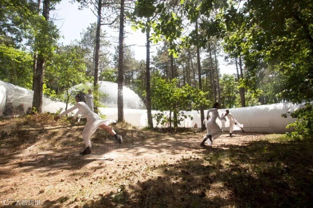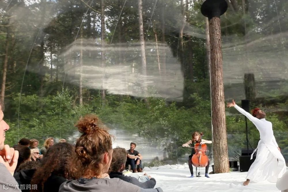 LOUD SHADOWS是专注于用塑料充气膜建造“气泡”形态Plastique Fantastique建筑工作室为2017年Oerol 艺术节在岛上森林打造的临时舞台,为荷兰作曲家、声音艺术家 Kate Moore、古典演奏组合 The Soltz 以及当代舞蹈公司 LeineRoebana 共同呈现出一个艺术表演创造的实验性舞台。