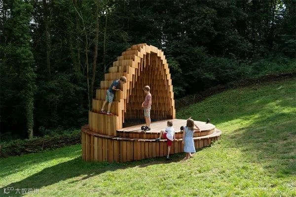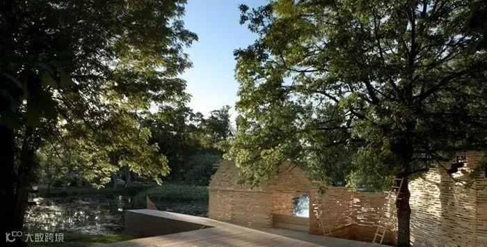 在比利时首都布鲁塞尔以西61公里左右的霍伦德里斯(Hollendries),有一处名为sint arnolduspark的古老公园。它建立于19世纪末,因独特天然泉水而闻名。现在这个历史悠久的公园内,新增这样一处景观:它是休闲建筑,也是舞台场景,还是引起游客们反思水在景观中重要作用的雕塑。