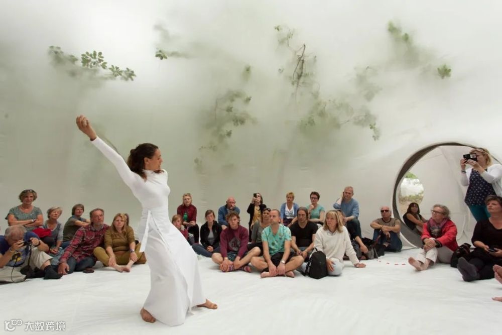 得益于利用了塑料薄膜,三个相连的建筑组件都呈现透明、轻盈的状态。它们也能够随时被移动位置。坐在“气泡”内的观众不仅可以在独立的空间内观看演出,同时也可以欣赏倒映入气泡内的外部自然景色。