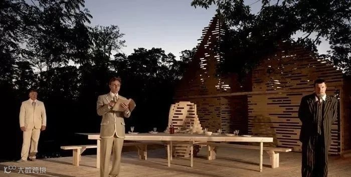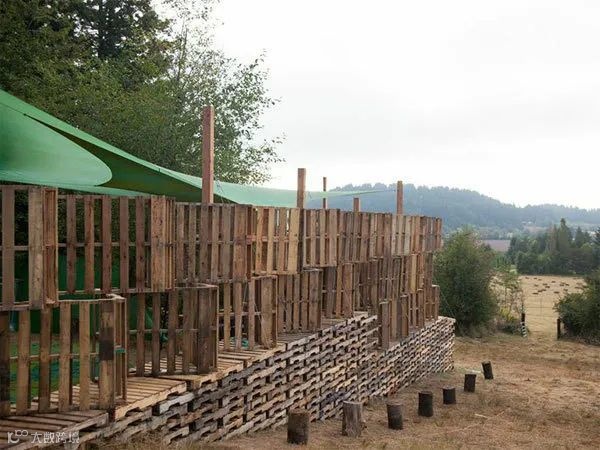 整个舞台,从背景、座位到装饰,都由这些可回收木制托盘组成,简洁质朴,浓浓自然乡风扑面而来,艺术性十足。