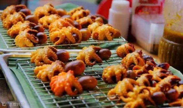 有人说:“到泰国去一定要尝尝当地著名的小食,不吃三十种小食,不算到过泰国。”游客到了泰国之后,许多人会发现不论是曼谷还是芭堤雅的大街小巷中都充满了林林总总的小食摊,白天它还不怎么耀眼,入夜灯光闪烁,把五光十色的小食摊照得色彩缤纷,就更增添了对游客们的诱惑力。这些小食摊卖的是什么货色呢?这可很难用一句话来概括了。除了水果、饮料之外,有卖烤肉串的,有卖炒米粉的,还有甜品摊,雪糕摊,鱼粥摊,牛杂摊,更有卖燕窝的。