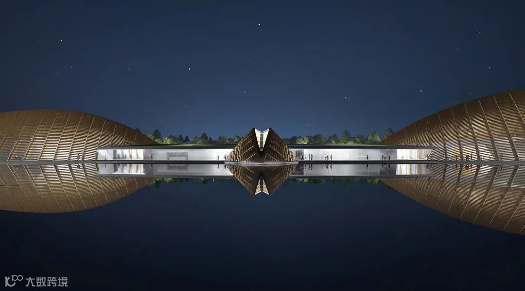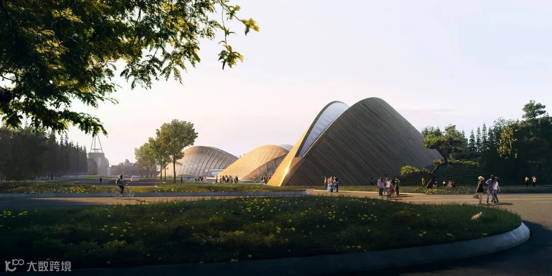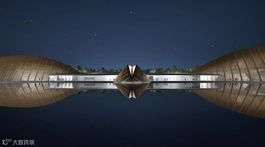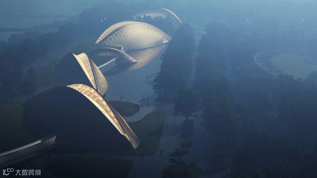 MAD在三星堆博物馆园区的密林绿水之上放置了一组错落分布的梭形木结构建筑群。新建筑群与原有景观构成了新的大地景观,一方面透露了与三星堆文物相仿的远古未来神秘感,另一方面以节制的体量和姿态与自然亲和相连,让园区成为了一处人文与自然相遇、历史与未来相遇的城市及文化公共空间。