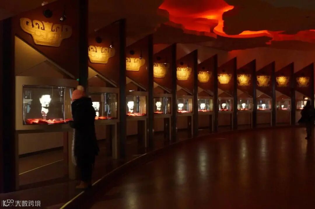 从游客接待服务中心主入口进入,在经过介绍三星堆文化的观影厅后,通过地下走廊来到博物馆建筑新馆的一层入口大厅,由此开启三星堆文化之旅。