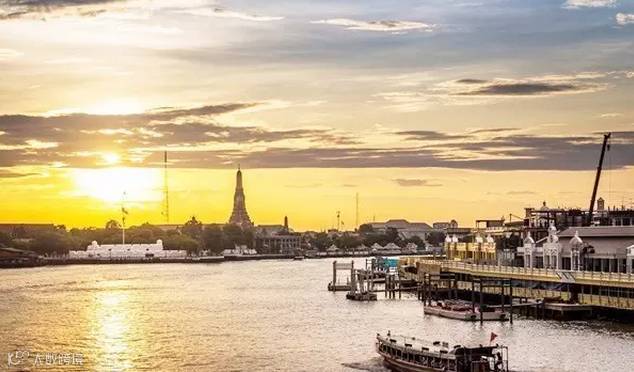 离玉佛寺不远处,就是泰国血脉之河「湄南河」,河畔矗立着一座历史悠久的佛寺─黎明寺,黎明寺有泰国最美之佛塔,叫做「Phra Prang 」,被刻在10 铢硬币的背面。夜晚的黎明寺在灯光的照耀下美丽无比,散发出独特的魅力。网路常常看到夕阳下的湄南河被染得金黄色,只见黎明寺佛塔群的剪影,只要到黎明寺对面的Tha Tien 码头,便可亲眼目睹此景象。