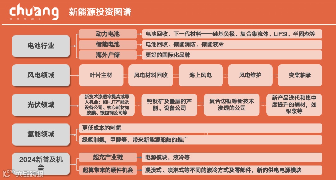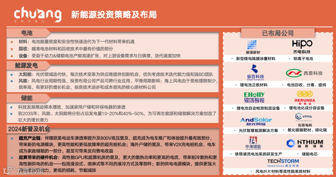 接下来,我大概从五个方面介绍一下经纬在新能源赛道的布局,以及我们未来会关注的几个细分方向。