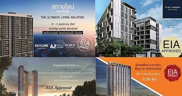 其实泰国很多项目是边等待EIA的审核边提前销售。因为泰国法律虽规定没通过EIA审核不能开始动工建设,但未规定不能提前销售。因而许多项目在在拿到EIA前喜欢抛个“Pre- sale预售“价格,预售价格当然会比拿到EIA后正式开盘销售的价格要低,项目拿到EIA后必定会提价,如同项目建成后的现房要比期房贵是一个道理,因为地产项目拿到EIA相当于一个拿了会计执照的会计师、律师执照的律师、飞行员执照的飞行员能立即对口就业上岗,是一个真实的存在。因而通过EIA的项目通常会在广告最显眼的位置“炫耀”其项目的真实存在,同时也给消费者提供更大的购买信心,降低消费者购期房的风险,不必担心付了定金后项目因没通过EIA而被全额退回。