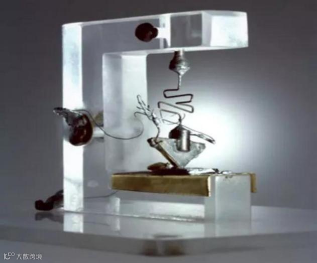 图4:第一个锗半导体点接触式晶体管(资料来源:贝尔实验室)