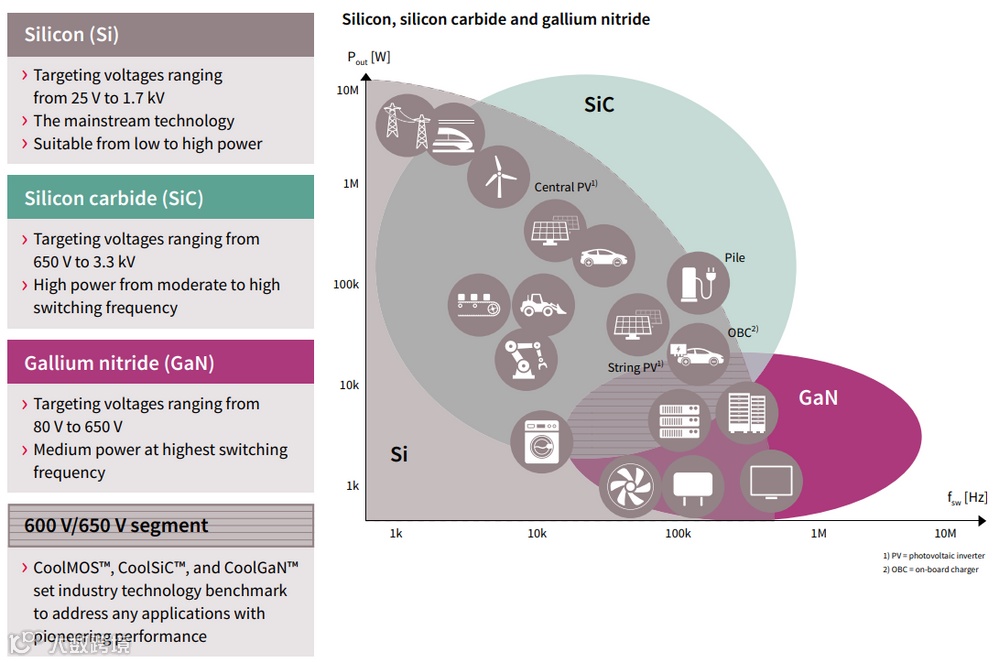 图6:几类半导体材料应用领域(资料来源:英飞凌)