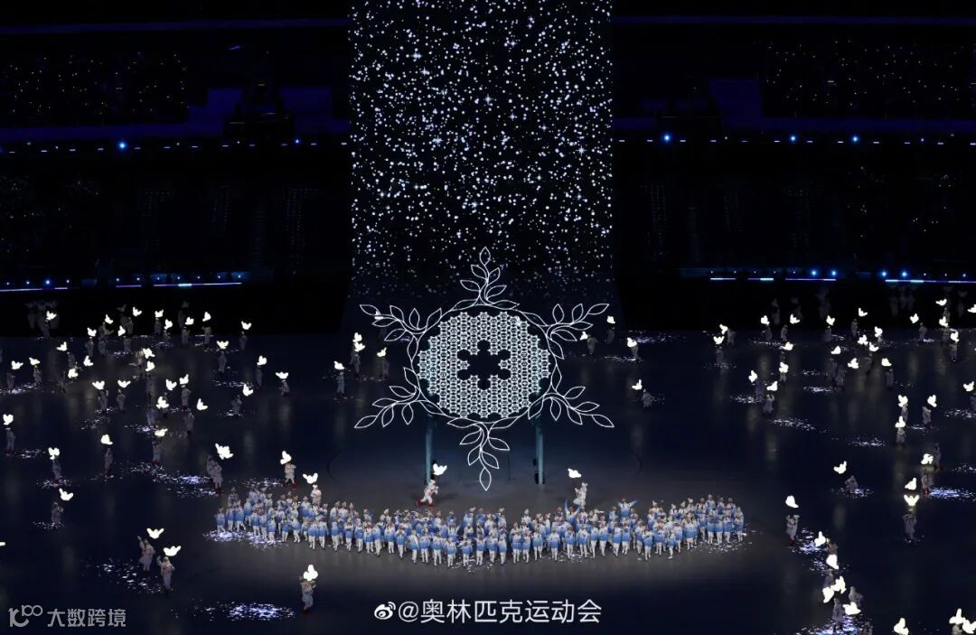 如果说08年“五环”展现出璀璨星河的梦幻,那此次冬奥“五环”则展现出冰雪世界的纯粹:当光束化成“激光雕刻”从鸟巢中央的“冰立方”中凿取“冰雪五环”,现场的热烈氛围达到极致。