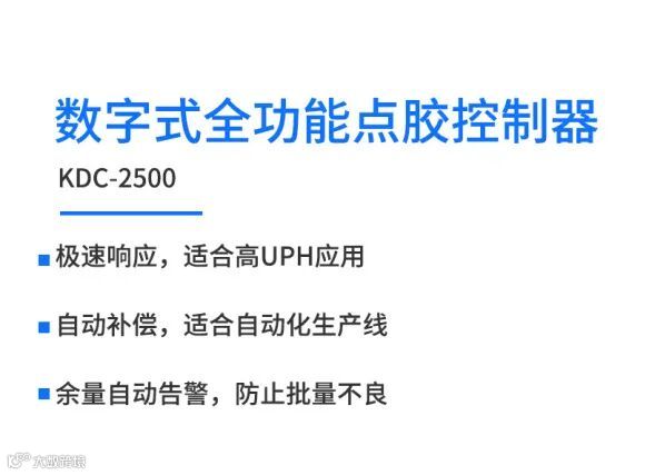 铭赛全新打造的KDC系列数字式全功能点胶控制器基于经验值的主动补偿或基于在线的实时补偿可实现稳定吐胶,为自动生产线带来高可靠性、高效率的精密点胶品质控制。