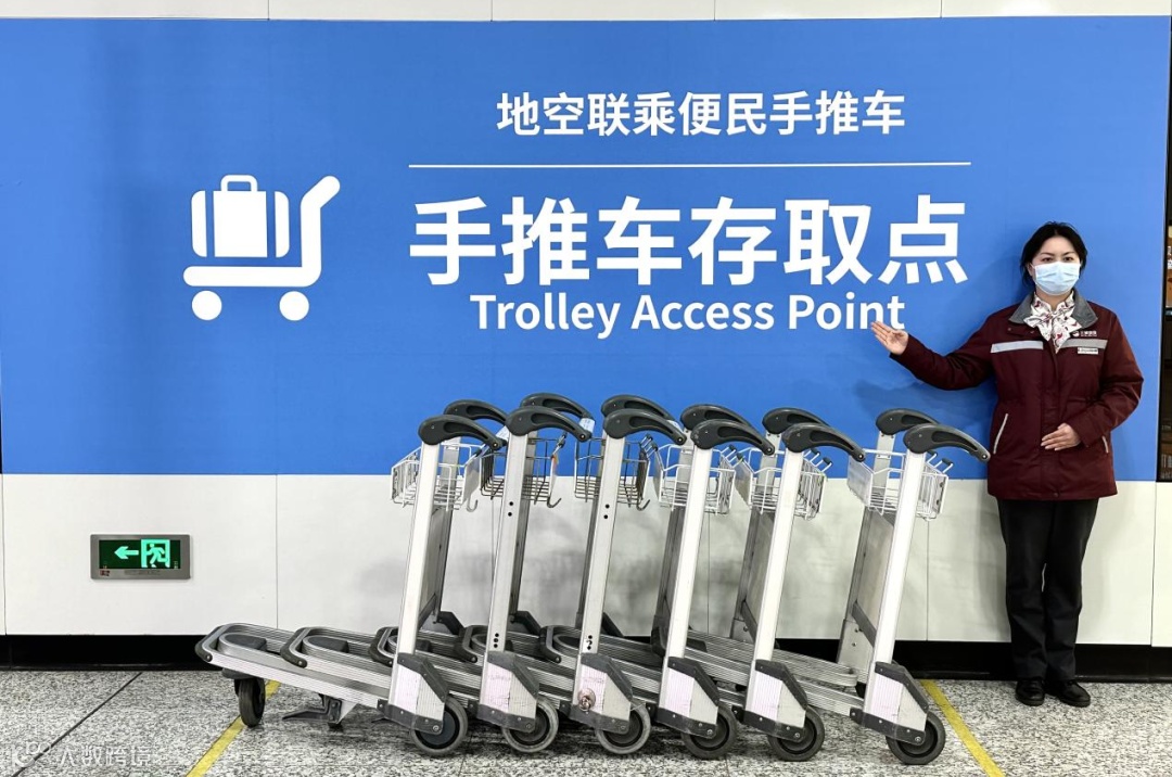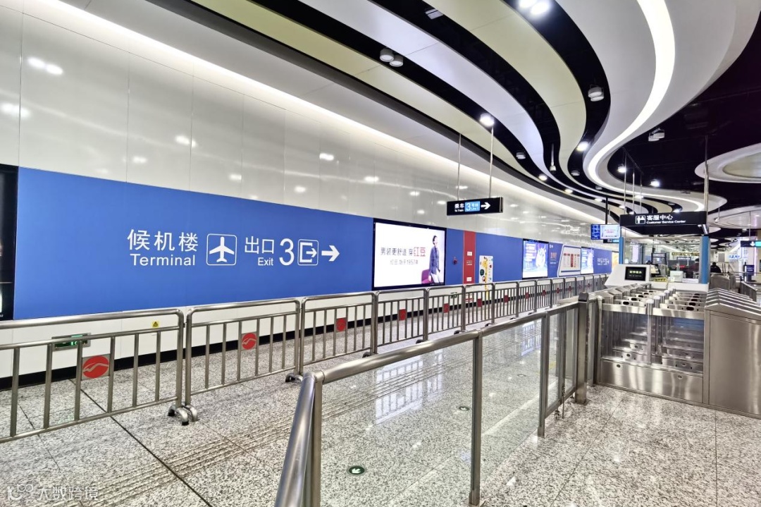 无锡新区站、硕放机场站站厅设置直观、醒目的换乘导向信息,宽度达到1.65米,突显指引信息,保障乘客“畅心畅行”,提升出行幸福感。导向整体底色为蓝色,采用“文字+图形+线路色”的组合方式,涵盖了地铁换乘机场、高铁的指引信息,为市民提升便捷出行体验。