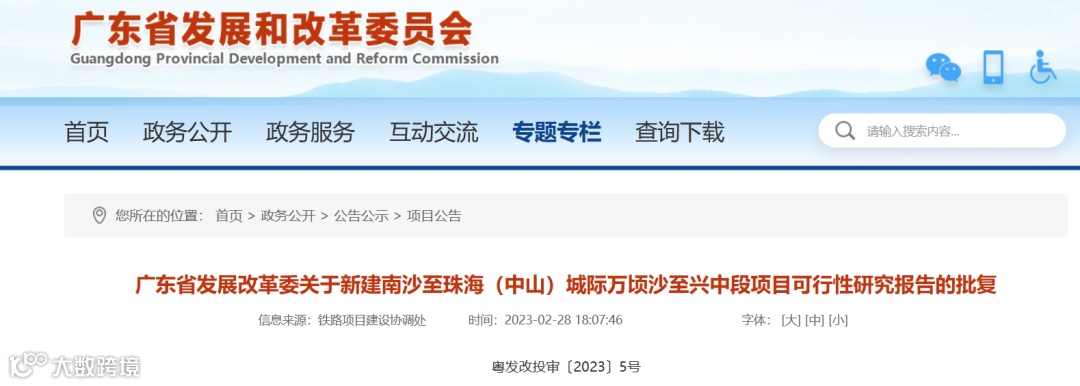 《广州市发展和改革委员会 中山市交通运输局关于审批南沙至珠海(中山)城际(万顷沙-兴中段)可行性研究报告的请示》(穗发改报〔2023〕49号)收悉。经国铁集团鉴定中心技术审查和广东省铁路规划设计研究院投资估算审查,并报省人民政府同意,现批复如下: