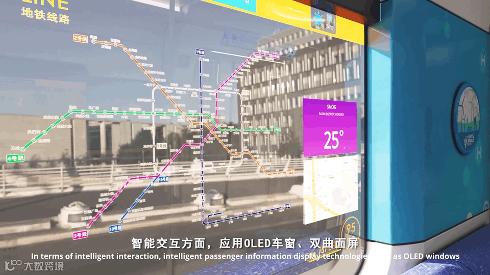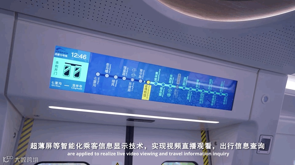 应用OLED车窗、双曲面屏、超薄屏等智能化乘客信息显示技术,实现视频直播观看,出行信息查询;采用智能照明系统,可根据车外环境自动调节亮度及色温,提升乘坐体验。