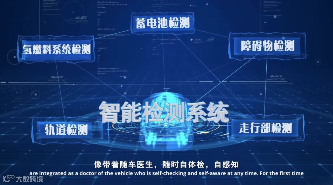 这次发布的氢能源市域列车兼具数字化、智能化的特点,车辆采用最高等级的自动驾驶技术,可实现车辆自动唤醒、自动启停、自动回库等智能行车功能;同时采用车-车通信系统,优化了车辆控制流程,极大地提升列车运行效率和安全可靠性。列车设置多个智能检测系统,数千个智能传感器,像带着随车医生,随时自体检,自感知,可对储氢系统和氢燃料电池系统自动监控、诊断、防护,确保氢系统在行车过程中的安全可靠。列车采用5G大容量车地通信技术,实现车地信息传输的多网融合,以大数据分析技术对列车运行状态进行评估,保障行车安全。
