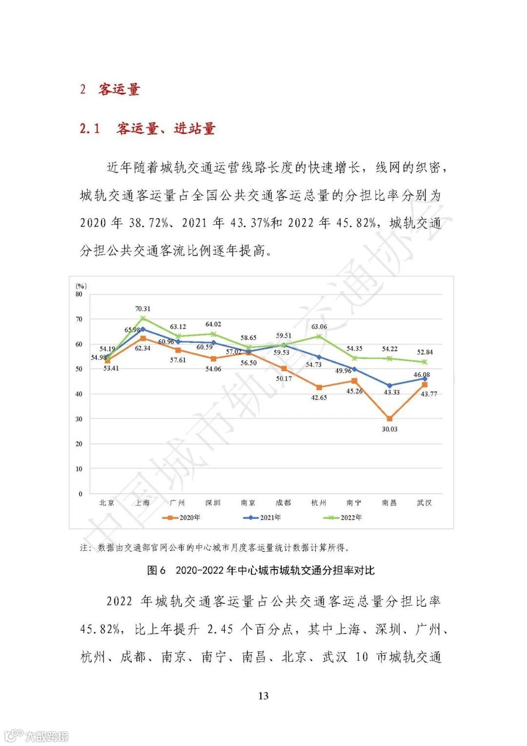 10个城市城轨交通客运量占公共交通的分担比率均超过50%。